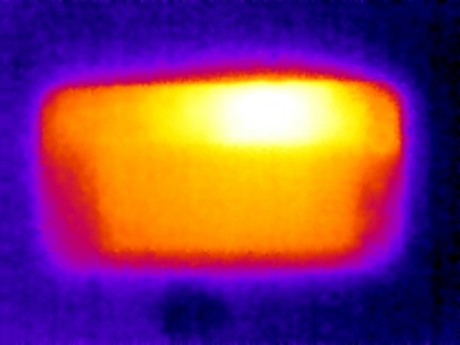Ниже приведен теплоснимок задней поверхности (верх на снимке — справа), полученный после 10 минут работы теста аккумулятора в программе GFXBenchmark:
