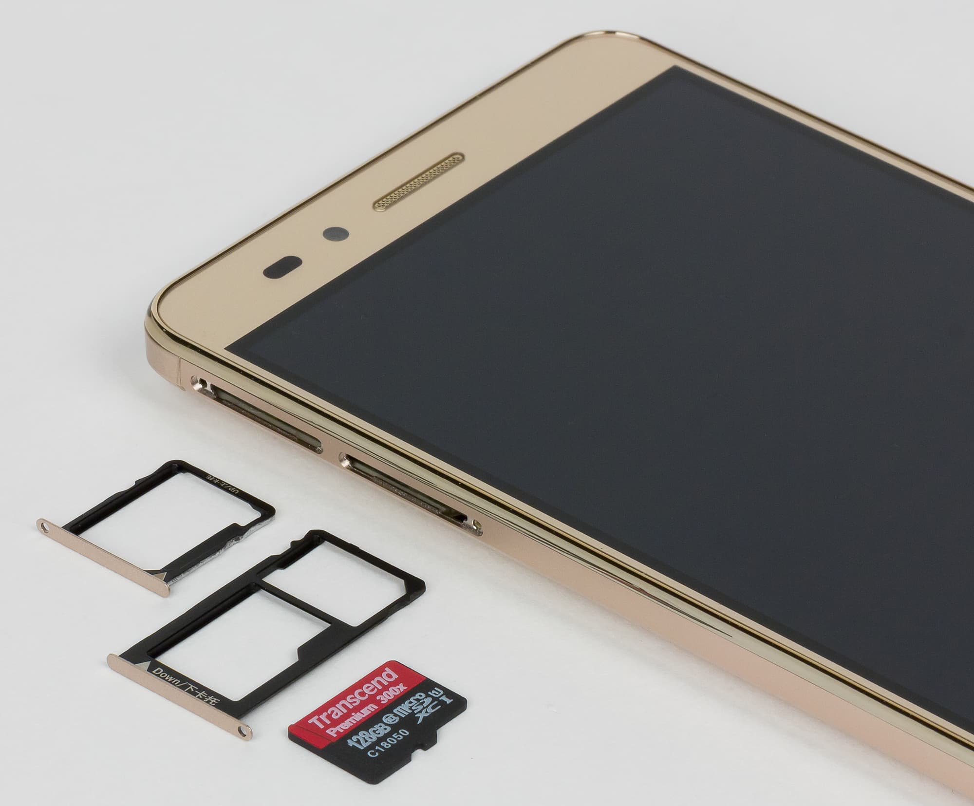 За обработку графики здесь отвечает не самый быстрый видеоускоритель Adreno 405. SoC Snapdragon 615 выполнена по техпроцессу 28 нм и принадлежит к категории решений среднего уровня. Оперативной памяти в устройстве предусмотрено 2 или 3 ГБ в зависимости от модификации. Объем встроенной памяти у всех моделей един, номинально он составляет 16 ГБ, на деле же пользователю изначально доступно не более 9,5 ГБ. К счастью смартфон поддерживает установку карт памяти, и при этом не приходится вынимать одну из SIM-карт. На практике наша проверочная карта Transcend Premium microSDXC UHS-1 объемом 128 ГБ уверенно распозналась устройством.