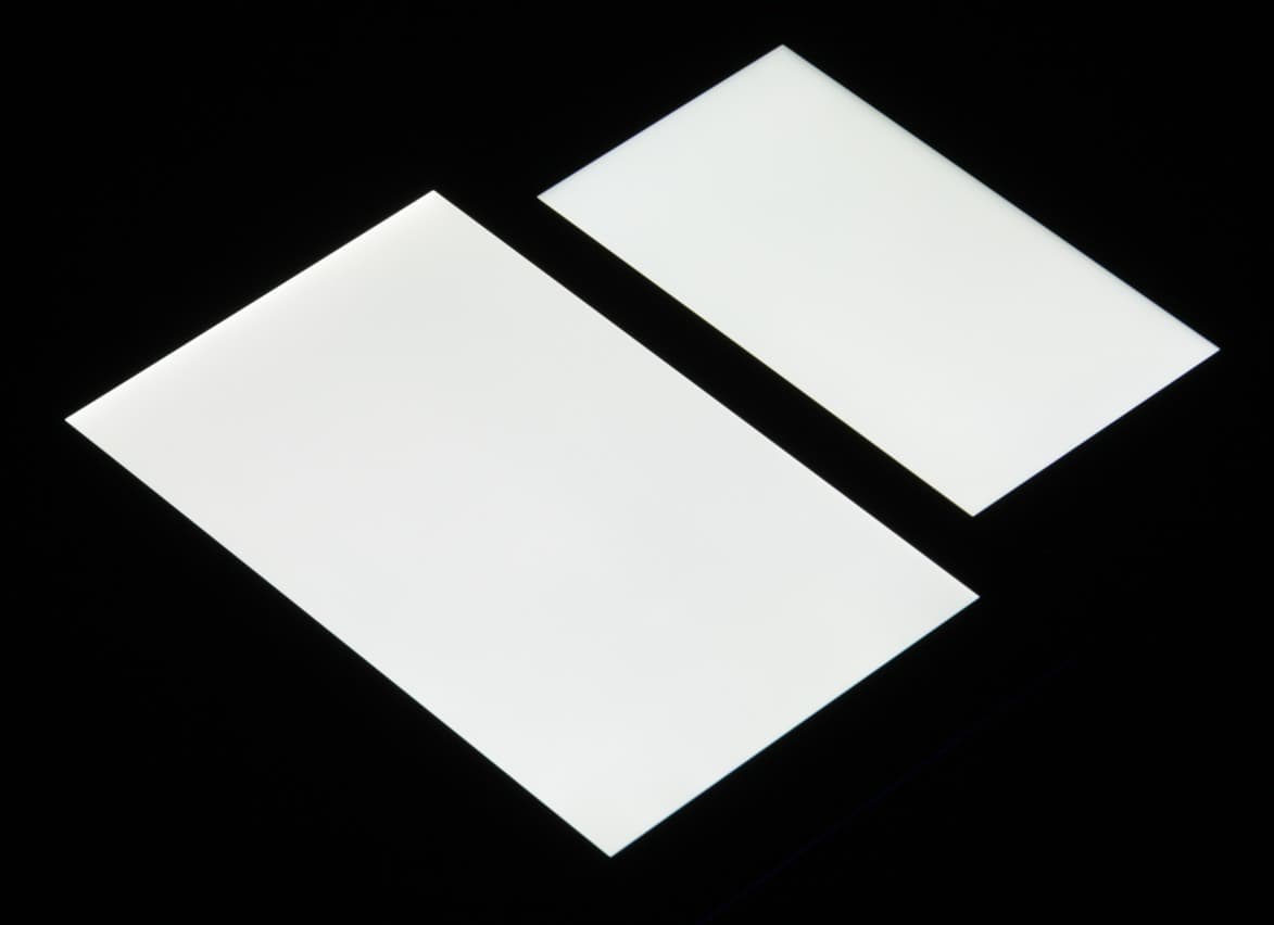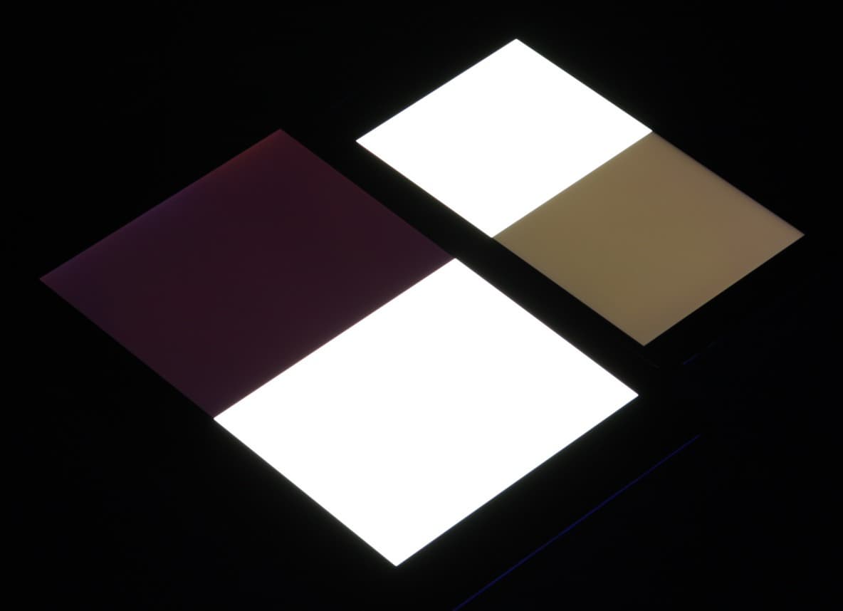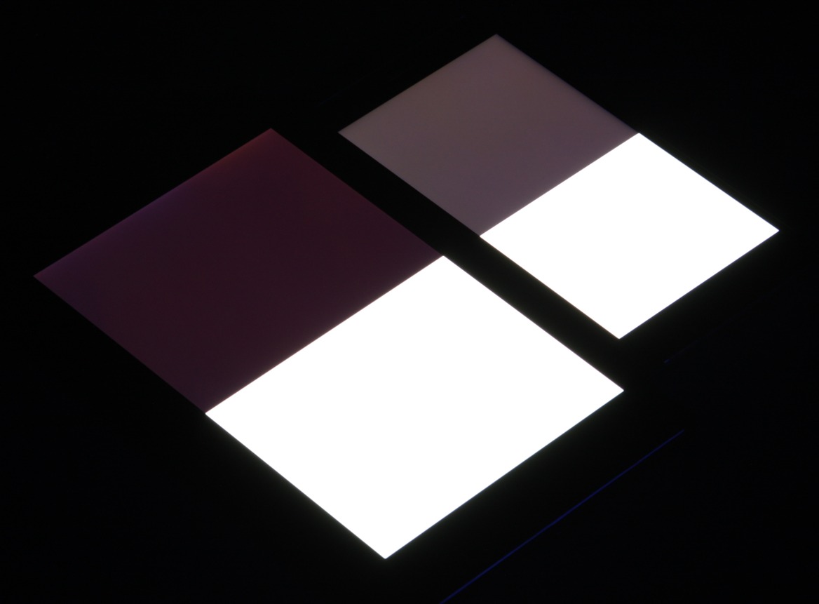 При перпендикулярном взгляде равномерность черного поля хорошая, хоть и неидеальная, так как ближе к краю черный местами немного высветляется: