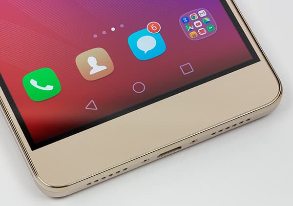 Непропорциональные, вытянутые отверстия в нижнем торце Honor 7, прикрывающие выход динамика, здесь заменили на круглые, добавили пару симметрично расположенных шурупов, и все сразу встало на свои места. Это еще раз доказывает, что если уж что-то копируешь, то иногда лучше не пытаться вносить свое ви́дение, это может только все испортить. Торцы здесь, как и у Honor 7, выполнены из окрашенного пластика, но он выглядит совершенно иначе и гораздо привлекательнее.