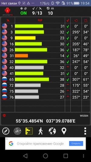 Навигационный модуль нашего тестового образца достаточно быстро, в течение первой минуты при холодном старте определил местонахождение спутников. Поддерживаются обе популярные системы — GPS и Глонасс. Датчик магнитного поля, необходимый для функционирования электронного компаса навигационных программ, здесь имеется.