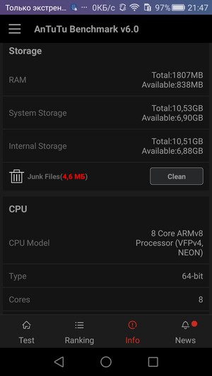 | AnTuTu (больше — лучше) | 34599 (v6.x) | 47256 (v5.x) | 42355 (v5.x) | 47323 (v5.x) |