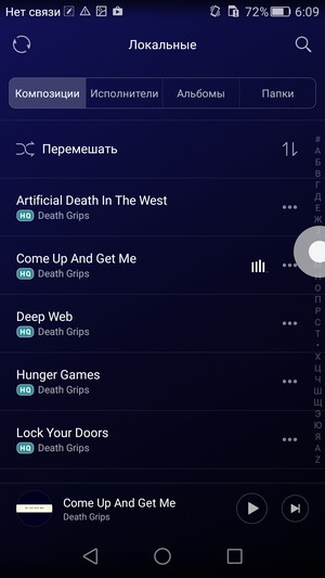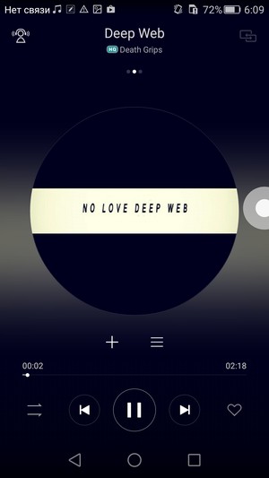 В разговорном динамике тембр и интонации знакомого голоса остаются узнаваемыми, система шумоподавления со своими задачами в целом справляется адекватно. Для воспроизведения мелодий в смартфоне используется штатный аудиоплеер Play Music с возможностью выбора из нескольких предустановленных значений эквалайзера либо свой собственный плеер вовсе без каких бы то ни было дополнительных настроек для улучшения звучания. FM-радио в штатной комплектации смартфона имеется, без подключенных в качестве внешней антенны наушников оно не работает.