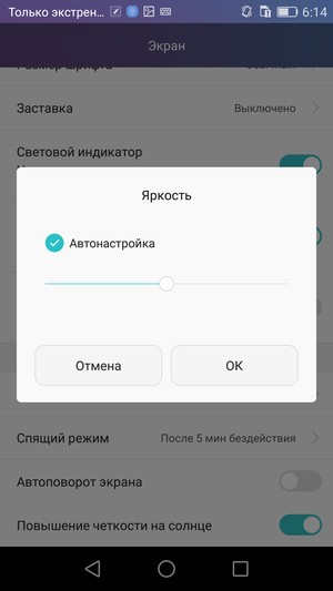 При ручном управлении яркостью и при выводе белого поля во весь экран максимальное значение яркости составило около 510 кд/м², минимальное — 6 кд/м². Максимальная яркость очень высокая, значит, учитывая хорошие антибликовые свойства, читаемость даже в солнечный день вне помещения должна быть на хорошем уровне. В полной темноте яркость можно понизить до комфортного значения. В наличии автоматическая регулировка яркости по датчику освещенности (он находится левее глазка фронтальной камеры). В автоматическом режиме при изменении внешних условий освещенности яркость экрана как повышается, так и понижается. Работа этой функции зависит от положения ползунка регулировки яркости. Если он на 100%, то в полной темноте функция автояркости уменьшает яркость до 70 кд/м² (многовато), в условиях освещенного искусственным светом офиса (около 400 лк) устанавливает на 320 кд/м² (можно было и поменьше), в очень ярком окружении (соответствует освещению ясным днем вне помещения, но без прямого солнечного света — 20000 лк или немного больше) яркость повышается до 510 кд/м² (до максимума — так и нужно); если регулировка примерно на 50%, то значения следующие: 6, 170 и 505 кд/м² (в темноте слишком темно, остальные значения подходящие), регулятор на 0% — 6, 46 и 270 кд/м² (значения заниженные, что логично). Компромиссным вариантом мы считаем установку ползунка примерно на 75% − 9, 230 и 510 кд/м². В целом функция автоподстройки яркости работает более-менее адекватно, разве что в полной темноте есть тенденция к занижению яркости, но часто в темноте экран включают уже после адаптации зрения, поэтому даже яркости в 6 кд/м² будет достаточно. На любом уровне яркости значимая модуляция подсветки отсутствует, поэтому нет и никакого мерцания экрана.