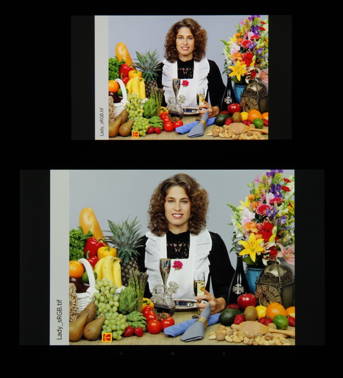 В итоге визуально цвета имеют естественную насыщенность. Баланс оттенков на шкале серого хороший, так как цветовая температура не сильно выше стандартных 6500 К, а отклонение от спектра абсолютно черного тела (ΔE) меньше 3, что даже для профессионального устройства считается отличным показателем. При этом цветовая температура и ΔE мало изменяются от оттенка к оттенку — это положительно сказывается на визуальной оценке цветового баланса. (Самые темные области шкалы серого можно не учитывать, так как там баланс цветов не имеет большого значения, да и погрешность измерений цветовых характеристик на низкой яркости большая.)