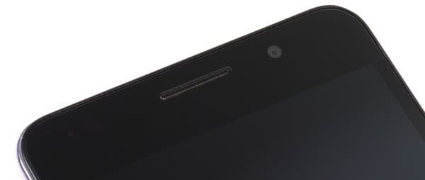 Сверху над экраном в защитное стекло врезана окрашенная в черный цвет решетка динамика, рядом виднеются глазки фронтальной камеры и сенсоров. Здесь же рядом расположен такой полезный элемент, как светодиодный индикатор — он оповещает различными цветами о статусе зарядки и входящих событиях.