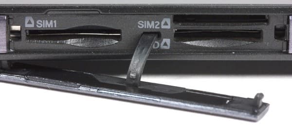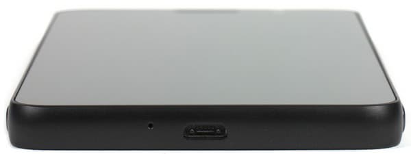 Несмотря на то, что слоты для карточек прикрыты снаружи крышкой, служит она здесь лишь для маскировки — смартфон не получил защиты от воды и грязи. Соответственно, и оба стандартных универсальных разъема, Micro-USB и аудиовыход для наушников 3,5 мм, никакими крышками здесь не прикрыты. Размещены они на привычных для себя местах — нижнем и верхнем торцах устройства соответственно. Разъем USB поддерживает подключение внешних устойств (OTG), так что к смартфону можно подключать с помощью OTG-переходника мышку или флэш-накопитель.