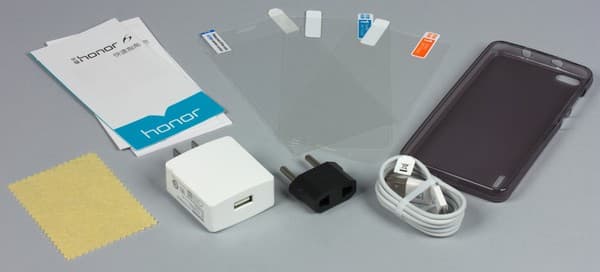 Содержащийся в коробке комплект аксессуаров весьма скромен: смартфон продается лишь с зарядным устройством и соединительным кабелем Micro-USB — ни наушников, ни дополнительных аксессуаров в фирменном наборе нет. В нашем случае, правда, в коробке нашелся полупрозрачный силиконовый чехол, весьма практичный и полезный в хозяйстве, а также защитная пленка для экрана, однако это, скорее всего, заслуга магазина, самостоятельно добавившего данные аксессуары в набор. Что же касается стандартного комплекта, то он примечателен лишь размером зарядного устройства — оно очень крупное, хотя и обладает вполне стандартными характеристиками (выходной ток 5 В, 2 А).