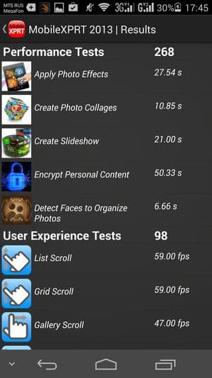 | Mobile XPRT 2013 (больше — лучше) | 268/98 | 165/63 | 132/93 | 132/89 |