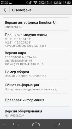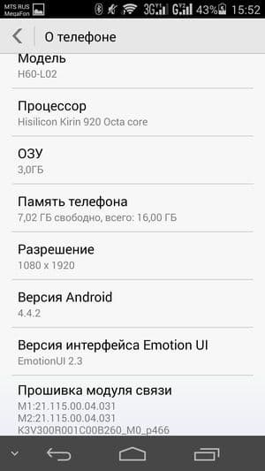 Основные характеристики Huawei Honor 6 (модель H60-L02)