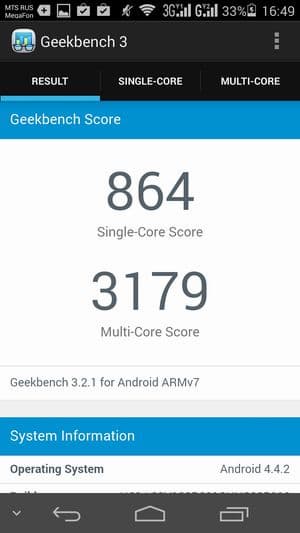 | GeekBench 3 (больше — лучше) | 864/3179 | 508/2565 | 433/2475 | 445/2374 |