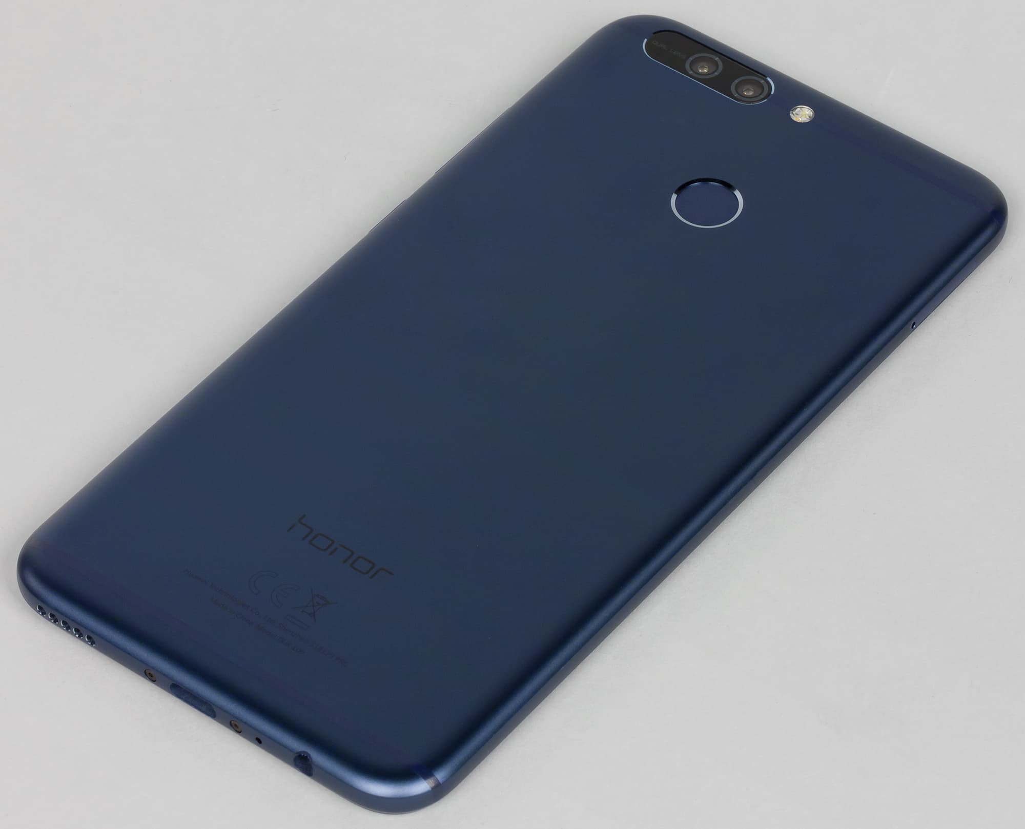 Аппарат крупный, довольно тяжелый, но при этом очень тонкий, что делает комфортным удержание его в руках. Металл не скользкий: пескоструйная обработка и полировка воздухом под высоким давлением позволили сделать Honor 8 Pro приятным и гладким на ощупь. Правда, отпечатки пальцев на такой поверхности остаются заметны.