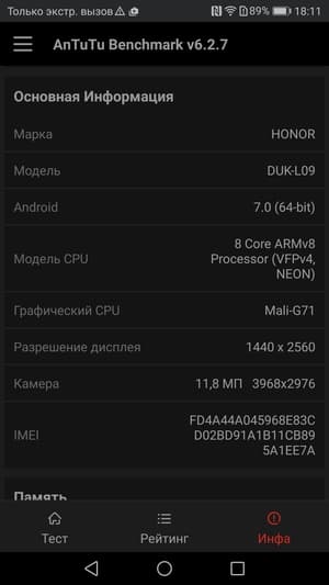 Основные характеристики Honor 8 Pro (DUK-L09)