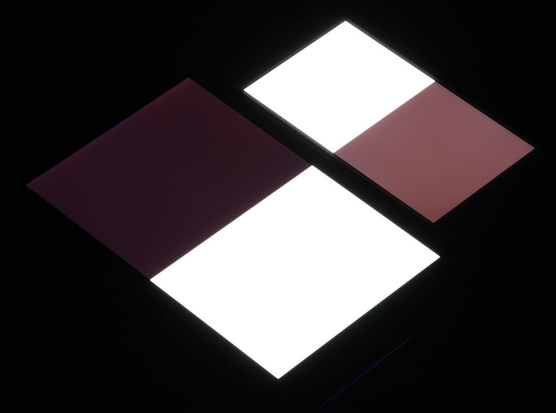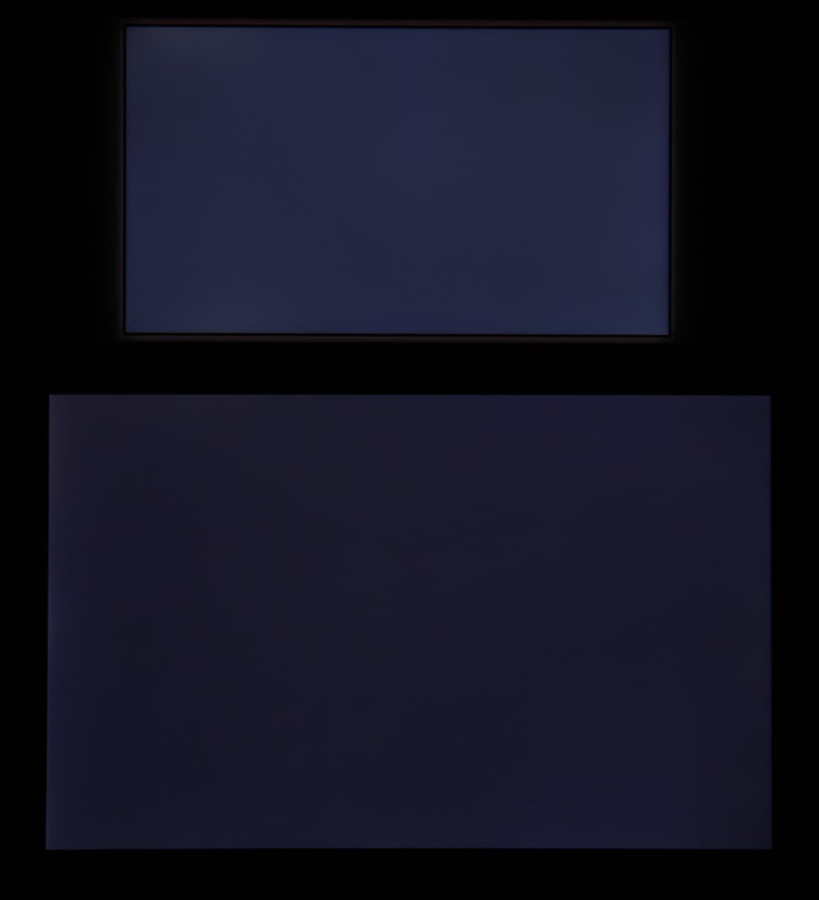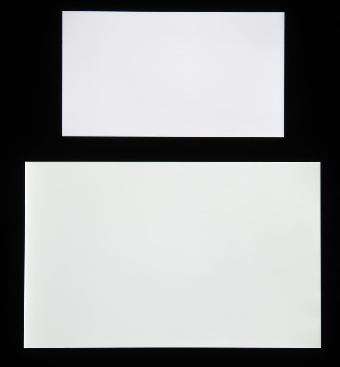 При перпендикулярном взгляде равномерность черного поля хорошая, хотя у границ экрана подсветка просвечивает сквозь белый корпус, что слегка ухудшает общее впечатление: