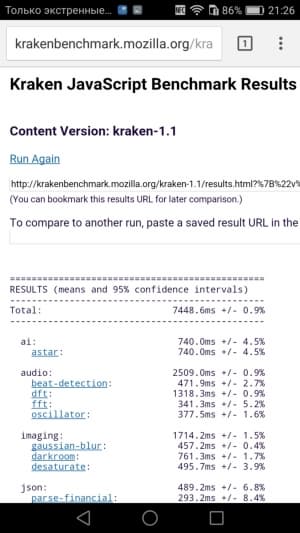 | Mozilla Kraken (мс, меньше — лучше) | 7449 | 9259 | 3809 | 10304 | 3536 |