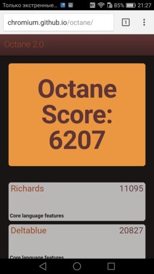 | Google Octane 2 (больше — лучше) | 6207 | 4542 | 8713 | 4368 | 4100 |