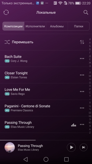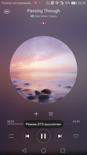 Для проигрывания мелодий используется собственный проигрыватель, и, как обычно, никаких дополнительных ручных настроек в нем нет — можно лишь включить или выключить целиком виртуальную систему DTS.