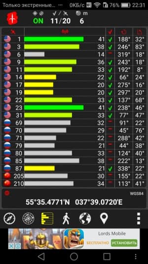 Навигационный модуль работает с GPS (А-GPS), Глонасс и китайской Beidou. К скорости работы навигационного модуля претензий нет, первые спутники обнаруживаются при холодном старте в течение первых десятков секунд. Смартфон оборудован сенсором магнитного поля, на основе которого функционирует компас навигационных программ.