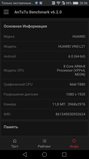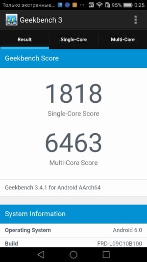 Kirin 950 — платформа топового уровня, это практически та же флагманская Kirin 955, только тут максимальная рабочая частота старших ядер Cortex-A72 уменьшена с 2,5 до 2,3 ГГц. Все остальное — то же самое, в том числе видеоядро Mali-T880 и сопроцессор i5, ответственный за работу датчиков Honor 8. Платформа гораздо мощнее, чем Kirin 650, которую установили в Huawei P9 Lite, очень большой отрыв виден во всех без исключения тестах. В комплексных тестах SoC Kirin 950 демонстрирует высокие результаты, хотя они не максимальны. Флагманами рынка мобильных платформ остаются топовые SoC Qualcomm и Samsung, их превосходство над Kirin 950/955 особенно проявляется в графических тестах. Тем не менее, производительности героя обзора должно хватать для выполнения любых задач, в том числе и достаточно требовательных игр.