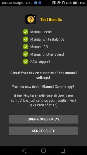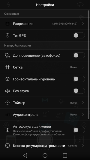 Само меню устроено логично, и если к нему привыкнуть, то пользоваться им окажется комфортно: жестом слева вызывается меню с разнообразными режимами, справа — меню настроек камеры (разрешение снимка, управление кнопками и т. п.), а снизу вызывается меню ручных настроек в режиме «Профи». В нем, как обычно, можно самостоятельно контролировать тип фокусировки, скорость затвора, чувствительность (ISO), экспокоррекцию и баланс белого. С помощью Camera2 API есть возможность передавать управление камерой сторонним приложениям без ограничений, вплоть до сохранения снимков в RAW.
