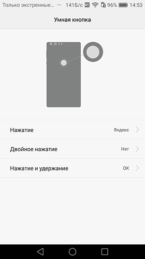 В смартфонах разных компаний время от времени встречаются дополнительные программируемые клавиши, здесь она называется «функциональной кнопкой Smart Key». Пользователь волен самостоятельно определить действия, выполняемые с помощью данной кнопки. Всего можно задать три варианта: для одинарного и двойного нажатия, а также для нажатия с длительным удержанием. По умолчанию на кнопку «повешены» функции открытия российских сервисов (поиск Яндекса и т. п.), но все это, как уже было сказано, пользователь может перенастроить под себя, предпочтя, например, включение фонарика, запуск камеры, диктофона или того же виртуального пульта ДУ.