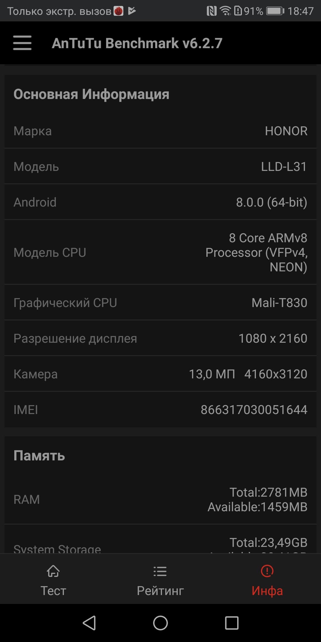 - SoC HiSilicon Kirin 659, 8 ядер Cortex-A53 (4@2,36 ГГц + 4@1,7 ГГц)