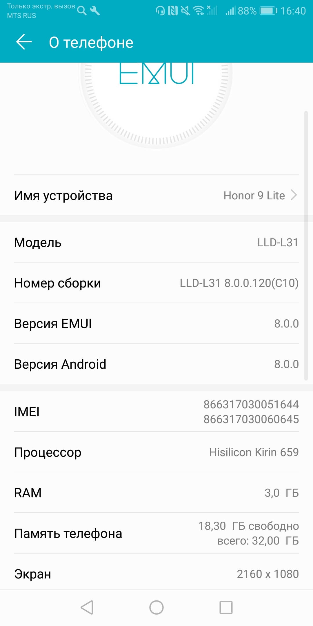 Смартфон поставляется с новой операционной системой Android 8.0 Oreo и фирменным интерфейсом EMUI, который обновлен до версии 8.0.