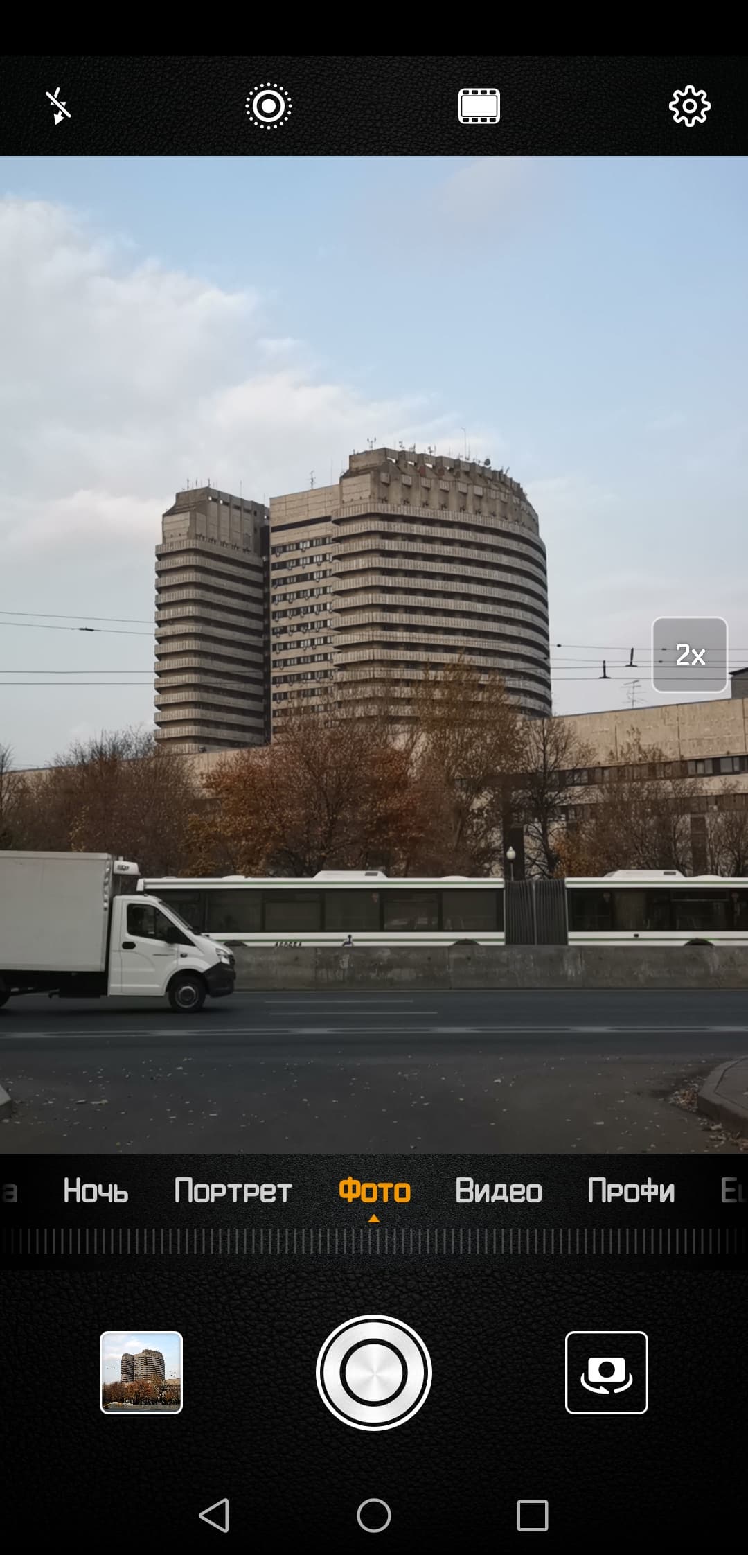На экране видоискателя с помощью одной кнопки переключаются режимы зума, и вот тут кроется какая-то тайна. 0,6× — широкий угол (16 Мп, f/2.2, 17 мм), 1× — основная камера (12 Мп, f/1,8, 27 мм), это понятно. А третья кнопка — 2× — выдает картинку с зумом 2× (f/2,4, 54 мм), но почему-то 12-мегапиксельную, хотя официально разрешение сенсора у третьего модуля составляет 8 Мп. Мы не видим на «спорных» снимках явных признаков интерполяции, деталей на них несомненно больше, чем у центральной части 12-мегапиксельного снимка основной камеры. Самым вероятным представляется тот вариант, что нам подложили гораздо лучший мех, то есть матрицу на 12 Мп вместо 8 (причем матрицу высокого качества) для телемодуля, но забыли исправить предварительные спецификации.