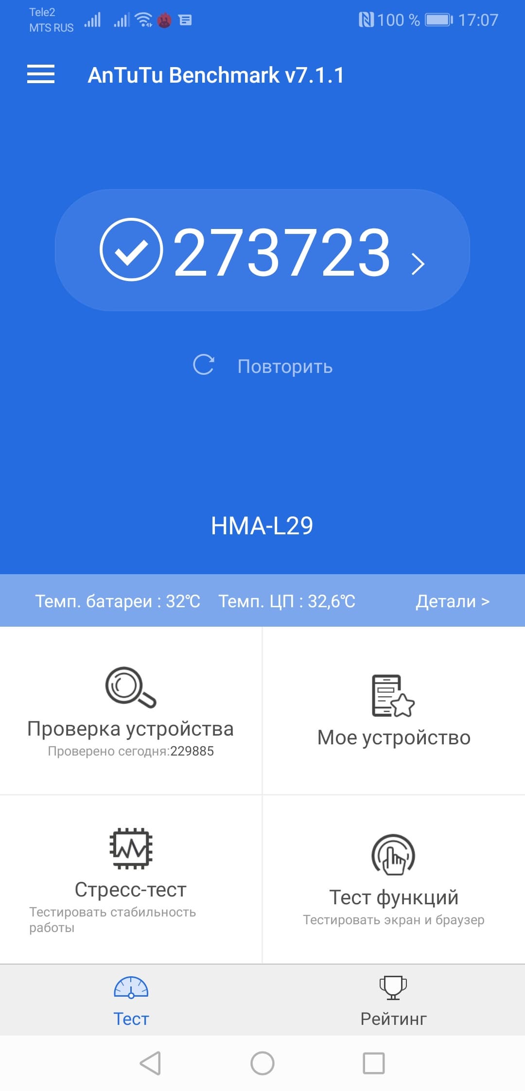 | AnTuTu (v7.x) (больше — лучше) | 273723 | 246602 | 169866 | 243281 | 143077 |