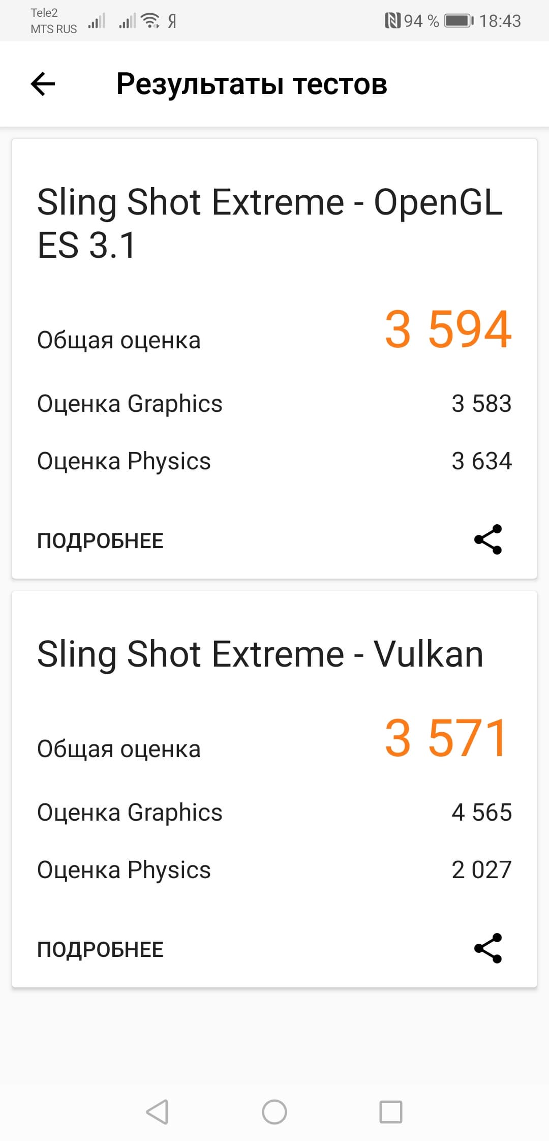 | 3DMark Sling Shot Ex Vulkan (больше — лучше) | 3571 | 3278 | — | 2840 | 1217 |