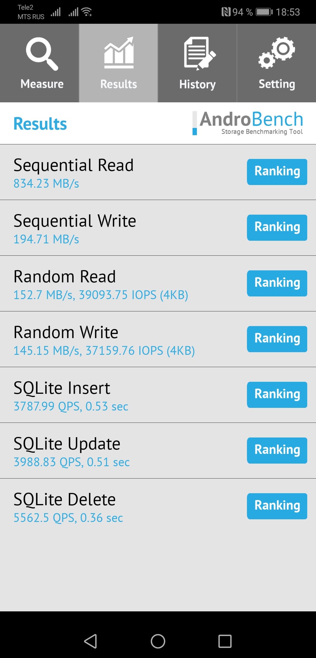 Смартфон поддерживает большое количество диапазонов частот LTE, однако тут не LTE Cat.21 со скоростью передачи данных до 1,4 Гбит/с, как у Mate 20 Pro, а «всего лишь» LTE Cat.13, 400 Мбит/с. Поддерживаются все распространенные в России диапазоны LTE FDD (Band 3, 7, 20), а также LTE TDD Band 38. На практике в пределах городской черты московского региона аппарат демонстрирует уверенную работу в беспроводных сетях, не теряет связь, быстро восстанавливает связь после вынужденного обрыва. Есть Wi-Fi (2,4 и 5 ГГц, с поддержкой 802.11ac), Bluetooth версии 5.0 (с кучей профилей для беспроводной трансляции музыки на наушники) и NFC. Идеально.