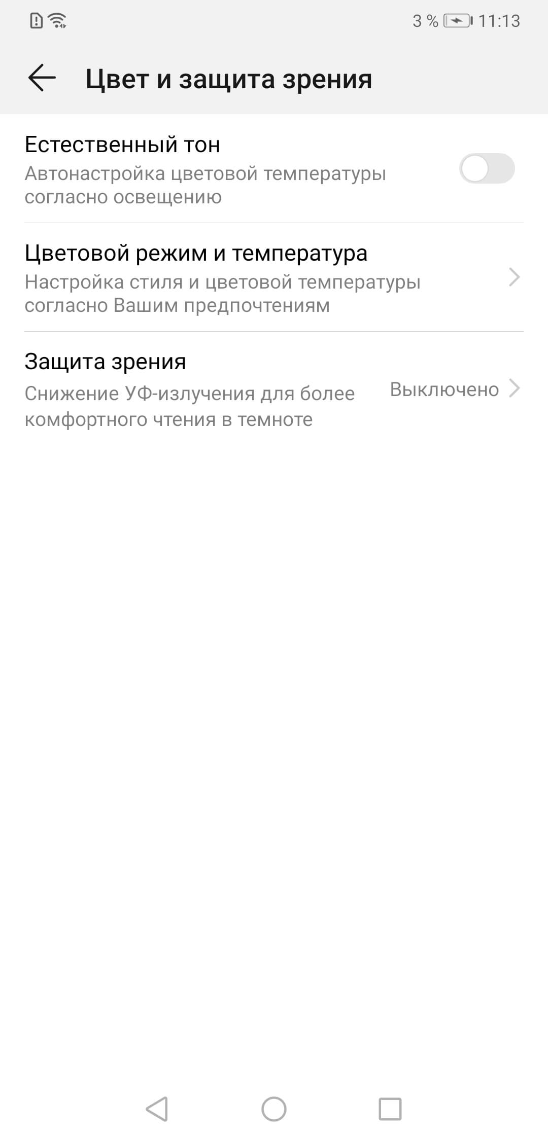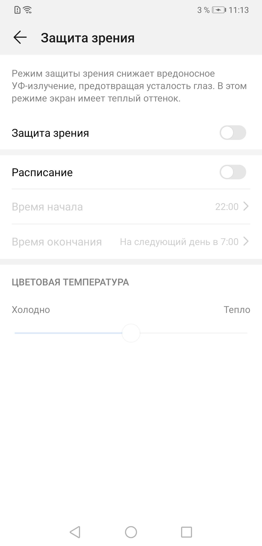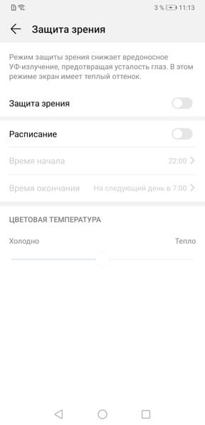 Присутствует модная настройка, позволяющая снизить интенсивность синей компоненты.