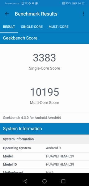 Huawei Kirin 980 — это первая из представленных SoC, которая производится по 7-нанометровому техпроцессу. Также это первое решение с процессорными ядрами Cortex-A76, с GPU Mali-G76, с двухъядерным блоком NPU. Платформа очень мощная, для нее нет никаких преград, она уверенно справляется с любыми задачами, быстро открывает приложения, бодро прокручивает интерфейс. Все проверенные игры, включая Modern Combat 3, Mortal Kombat X, Injustice 2 и PUBG, уверенно идут без малейших притормаживаний на максимальных настройках. При таком огромном экране играть в игры — одно удовольствие. У смартфона, безусловно, имеется значительный запас производительности для будущих обновлений.