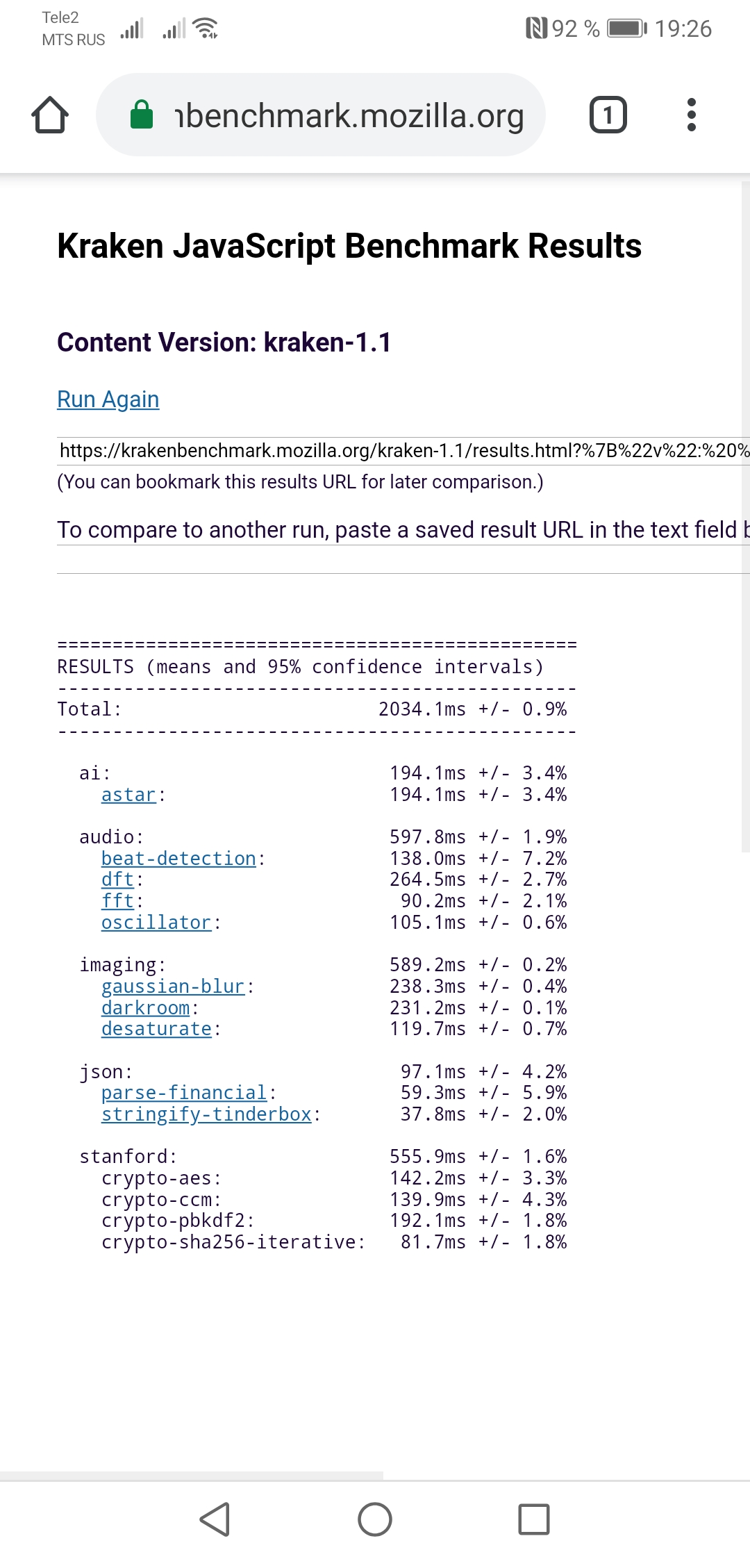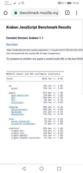 | Mozilla Kraken (мс, меньше — лучше) | 2034 | 2255 | 3837 | 2687 | 5106 |