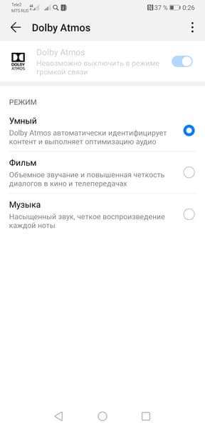 Через беспроводные наушники с помощью Bluetooth смартфон умеет воспроизводить аудио в качестве Hi-Res благодаря поддержке беспроводного кодека LDAC. Поддержка Qualcomm aptX HD тоже есть. Система Dolby Atmos позволяет выбирать профили, но без возможности отдельных регулировок. В целом, и в наушниках и через стереодинамики смартфон звучит достойно: звук чистый, громкий, насыщенный. Любопытно, что динамик в нижнем торце выведен за традиционный ряд отверстий, тогда как у старшей модели звук выходит прямо через отверстие разъема USB Type-C. Зато тут есть 3,5-миллиметровый аудиовыход, и, как и у Mate 20 Pro, динамики работают в стереорежиме.