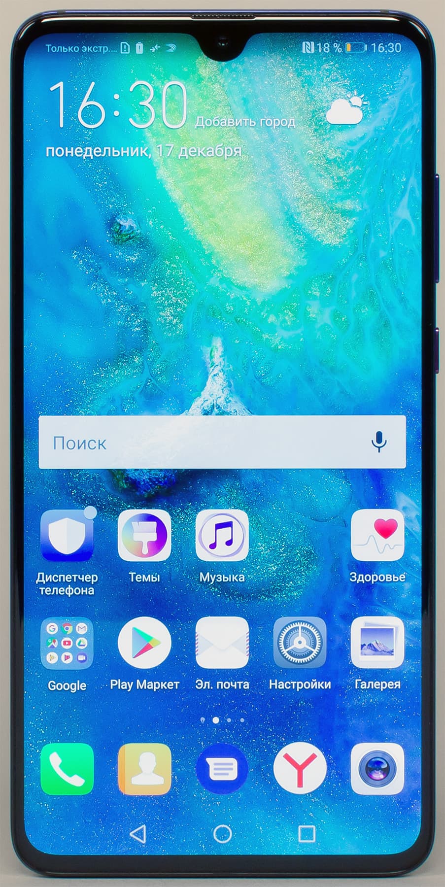 Huawei Mate 20 является ближайшим родственником Huawei Mate 20 Pro, но отличается от него заметно. И, надо признать, в лучшую сторону. У старшей версии сильно зауженные, практически заостренные боковины, а здесь боковые грани гораздо шире, есть за что крепко ухватиться, потому что стекло экрана более плоское. Huawei Mate 20 Pro со своим 3D-стеклом с сильно закругленными краями буквально выскальзывает из ладони, словно кусок мыла, при попытке управления одной рукой. Huawei Mate 20 с «обычным» 2.5D-стеклом превосходно удерживается в руке, хотя спинки у них имеют одинаковые закругления. Это еще раз доказывает, что лучшее — враг хорошего, перебарщивать никогда не стоит.