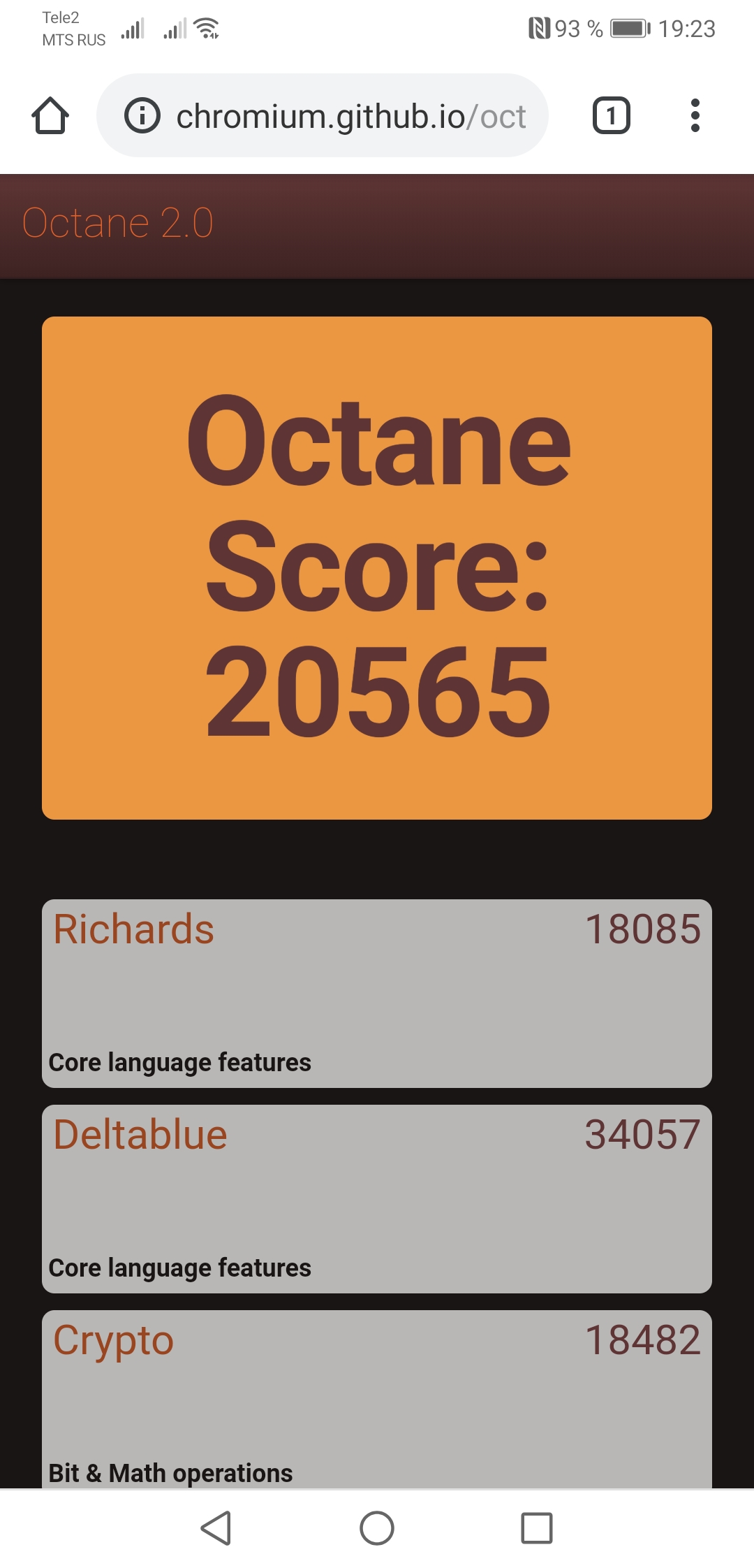 | Google Octane 2 (больше — лучше) | 20565 | 15875 | 10127 | 15042 | 8341 |