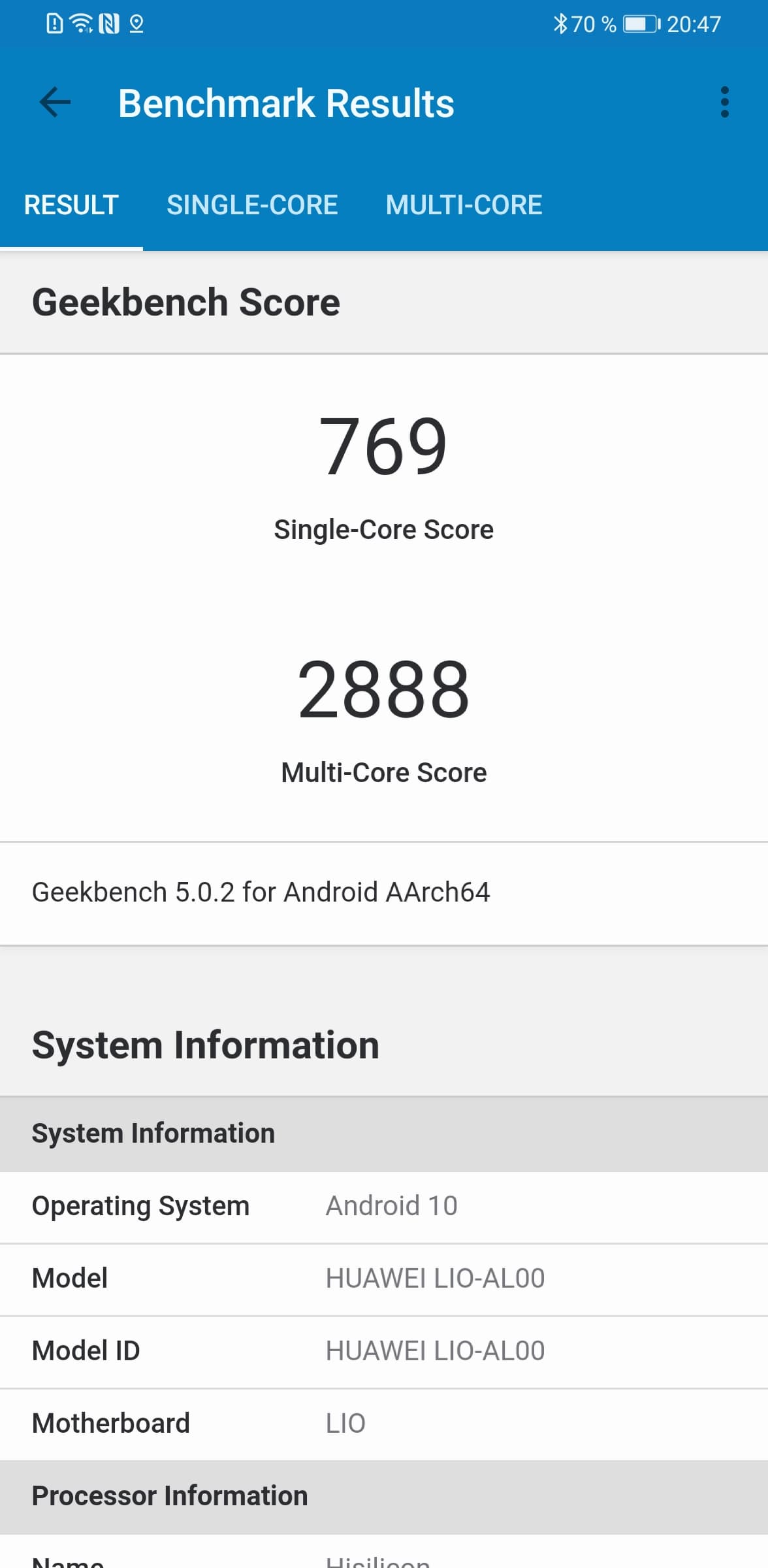- SoC Huawei Kirin 990, 8 ядер: 2×Cortex-A76 @2,86 ГГц, 2×Cortex-A76 @2,09 ГГц, 4×Cortex-A55 @1,86 ГГц