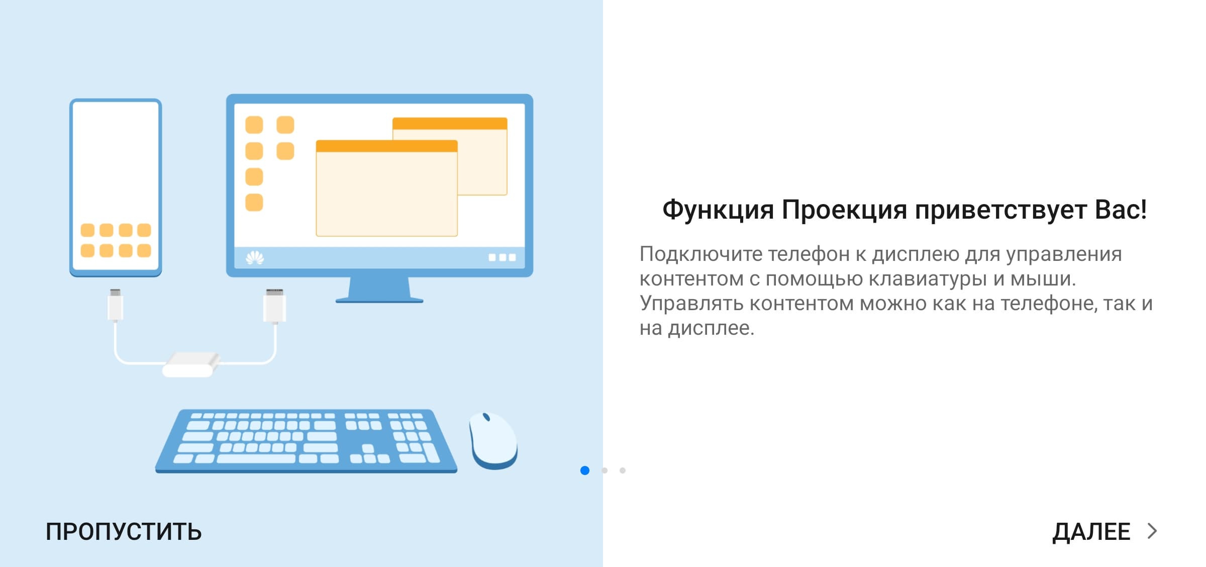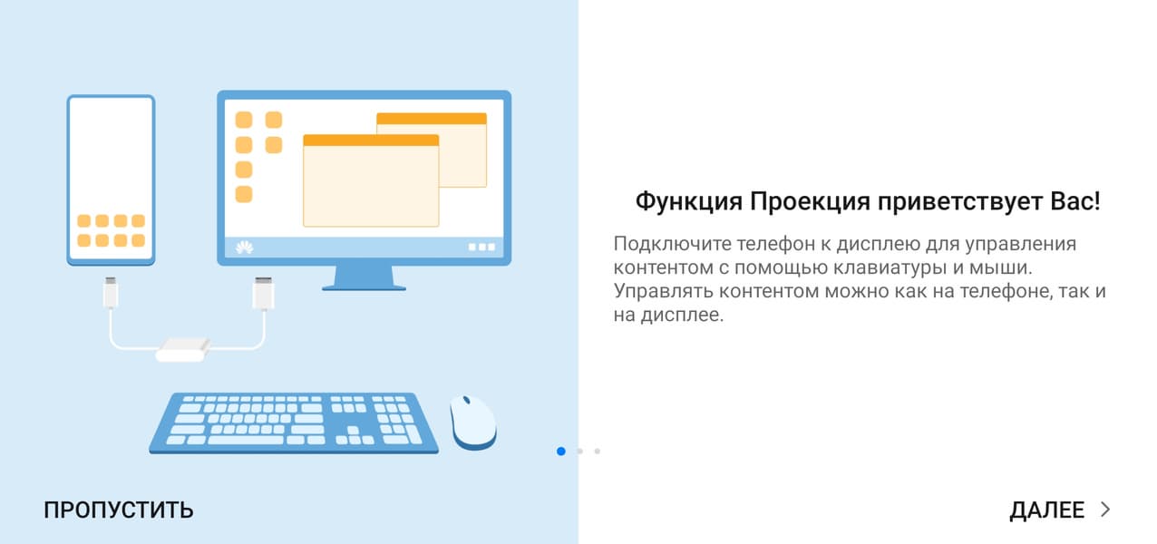 Не все приложения гарантированно могут работать корректно в таком режиме. Управляющая панель в нижней части экрана убирается при выводе изображения на весь экран (например, при воспроизведении видео). Вывод осуществляется уже в истинном разрешении 1920×1080 и точка в точку. Отметим, что одновременно с выводом изображения и звука можно по USB подключать к смартфону мышь и клавиатуру (переключение раскладки — Ctrl+пробел), USB-флешки и т. д., превращая смартфон в основу для рабочего места, но для этого адаптер или монитор (имеющий вход USB Type-C) должны допускать подключение внешних USB-устройств (то есть иметь USB-концентратор). Для зарядки смартфона к адаптеру/док-станции потребуется подключить зарядное устройство, а мониторы со входом USB Type-C обычно сами подают питание на смартфон. В режиме рабочего стола на внешнем мониторе можно параллельно работать на самом смартфоне, то есть получается два рабочих стола одновременно, но вывод видео в режиме аппаратного декодирования осуществляется только на один экран, также одна и та же программа не может работать и там, и там.