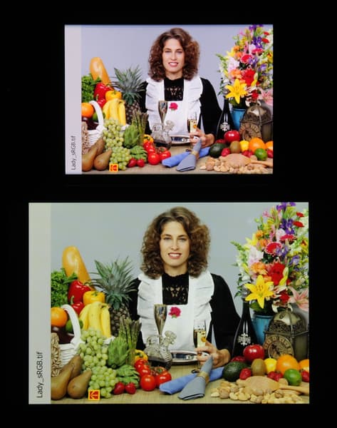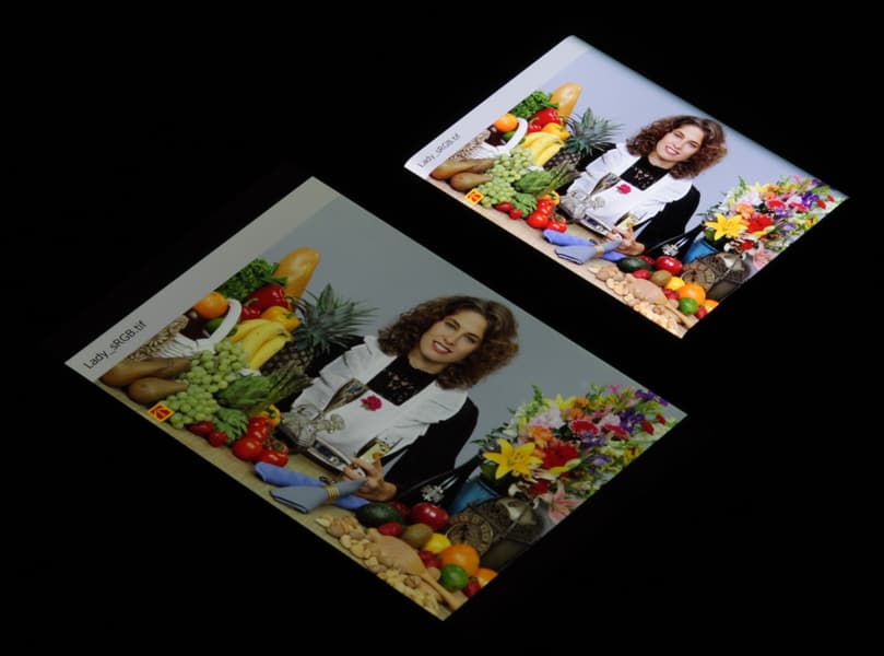 Отметим, что на экранах с широким цветовым охватом (без соответствующей коррекции) цвета́ обычных изображений, оптимизированных для устройств sRGB, выглядят неестественно насыщенными. Отсюда и рекомендация: в большинстве случаев смотреть кино, фотографии и все естественное лучше при выборе профиля Обычные, и только если фотография или видео имеют охват DCI-P3, принятый в цифровом кинематографе и «родной» для топовых устройств Apple, имеет смысл переключить профиль на Яркие.
