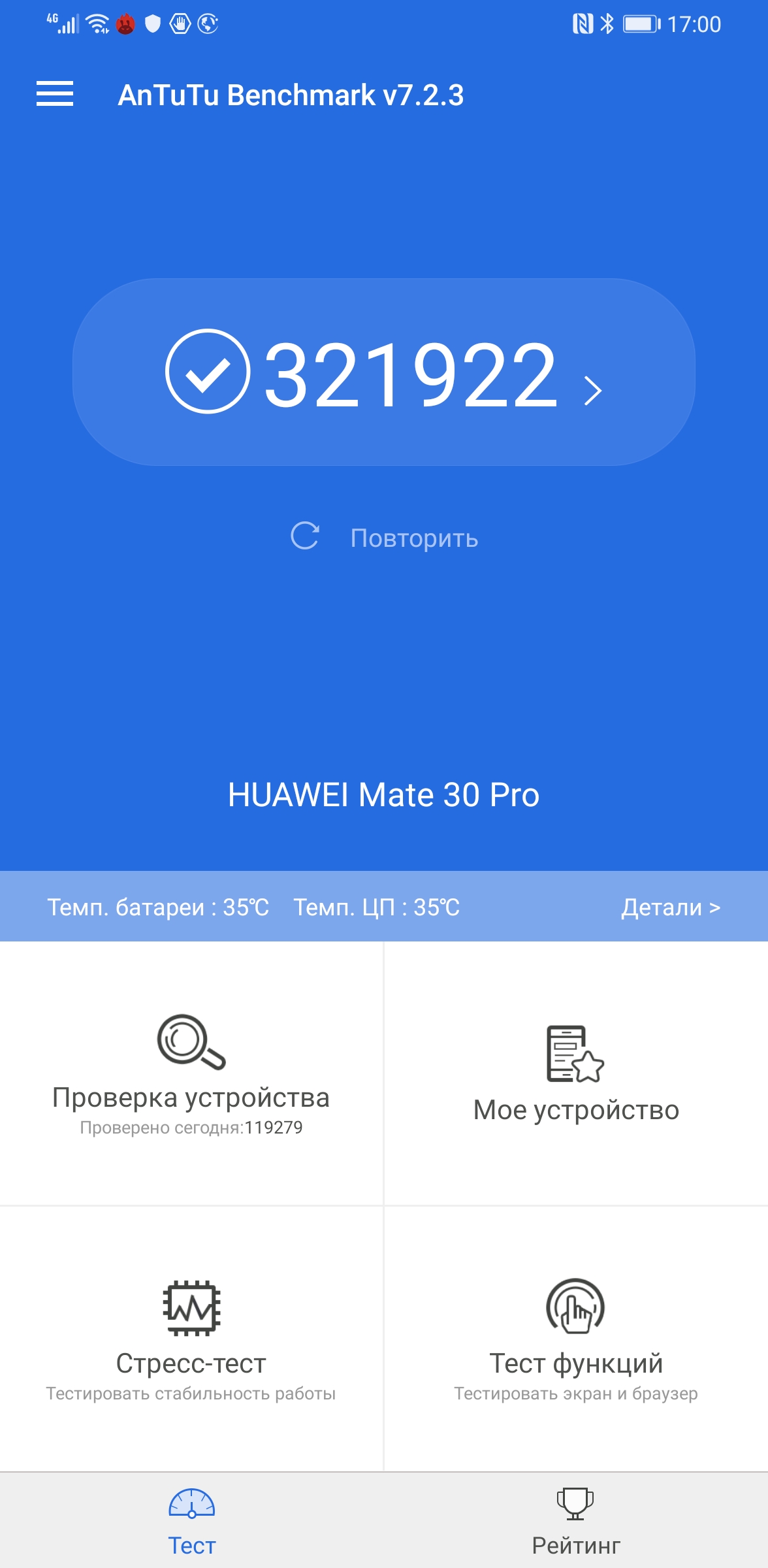 | AnTuTu (v7.x) (больше — лучше) | 321922 | 338801 | 373368 | 313035 | 328955 |