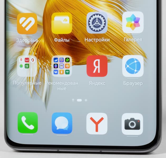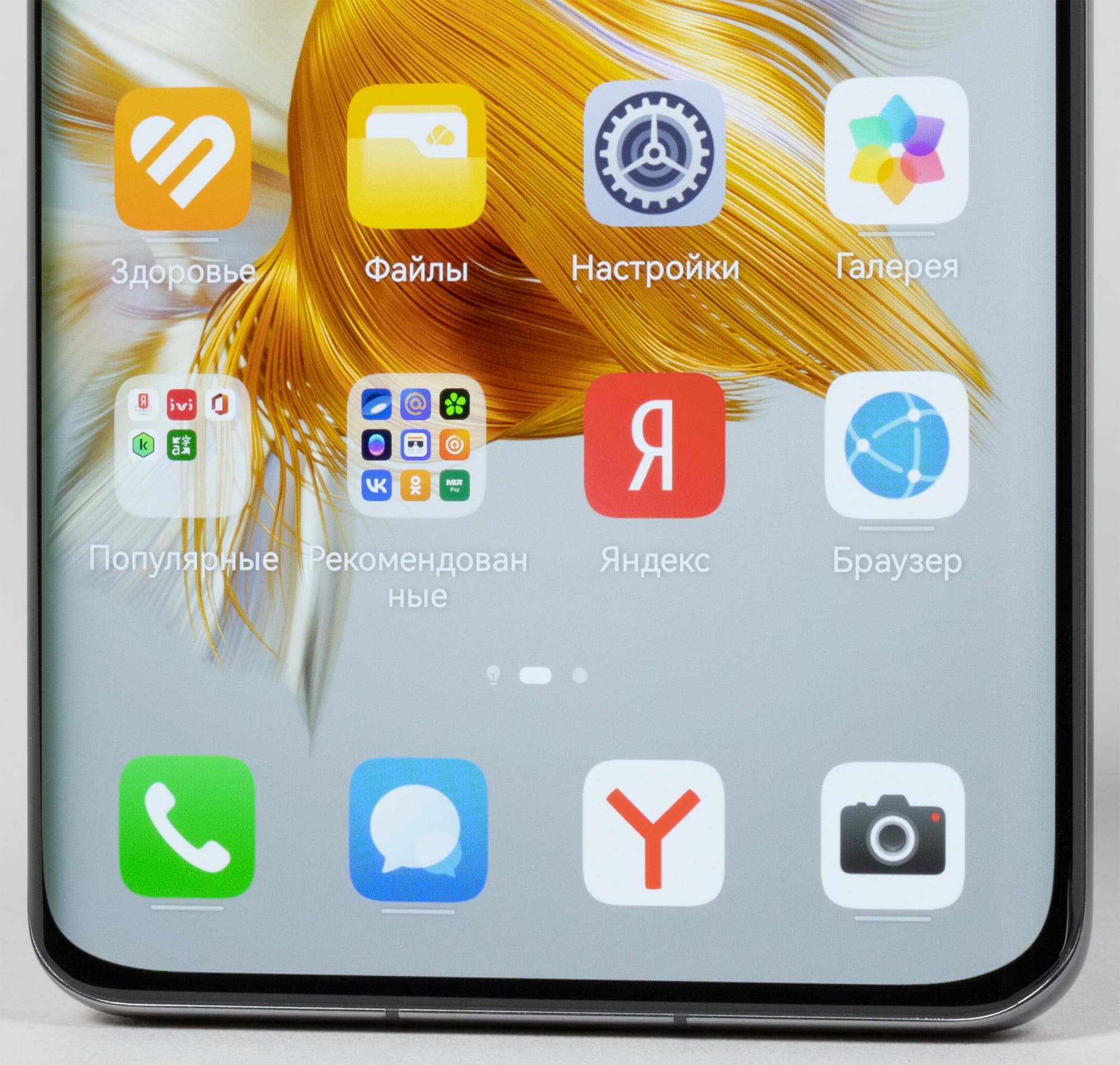 Цветопередача хорошая, цвета в меру насыщенные, цветовой баланс у экранов немного различается. Напомним, что фотография не может служить надежным источником сведений о качестве цветопередачи и приводится только для условной наглядной иллюстрации. В частности, выраженный красноватый оттенок белого и серого полей, присутствующий на фотографиях экрана Huawei Mate 50 Pro, при перпендикулярном взгляде визуально отсутствует, что подтверждается аппаратными тестами с помощью спектрофотометра. Причина в том, что спектральная чувствительность матрицы фотоаппарата неточно совпадает с этой характеристикой человеческого зрения. Заметим, что в данном случае картинка занимает в высоту (при ландшафтной ориентации экрана) всю доступную для вывода изображения область и заходит на загнутые края экрана, что приводит к легкому затемнению и искажению цвета. Также на свету эти области почти всегда бликуют, что еще больше мешает при просмотре изображений, выведенных на весь экран. И даже картинка фильмов с соотношением сторон 16:9 заходит на загибы, что очень не к месту в случае видео.