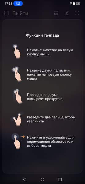 В режиме альтернативного рабочего стола на монитор выводится совершенно другой основной экран, а экран смартфона может использоваться в качестве сенсорной панели координатного ввода, или быть планшетом для рисования поверх рабочего стола, или работать как обычно, вторым рабочим столом небольшого размера.