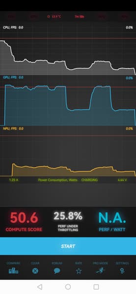 Тест на снижение производительности при нагреве мы проводим с помощью программы Burnout Benchmark, которая позволяет нагружать CPU, GPU и NPU:
