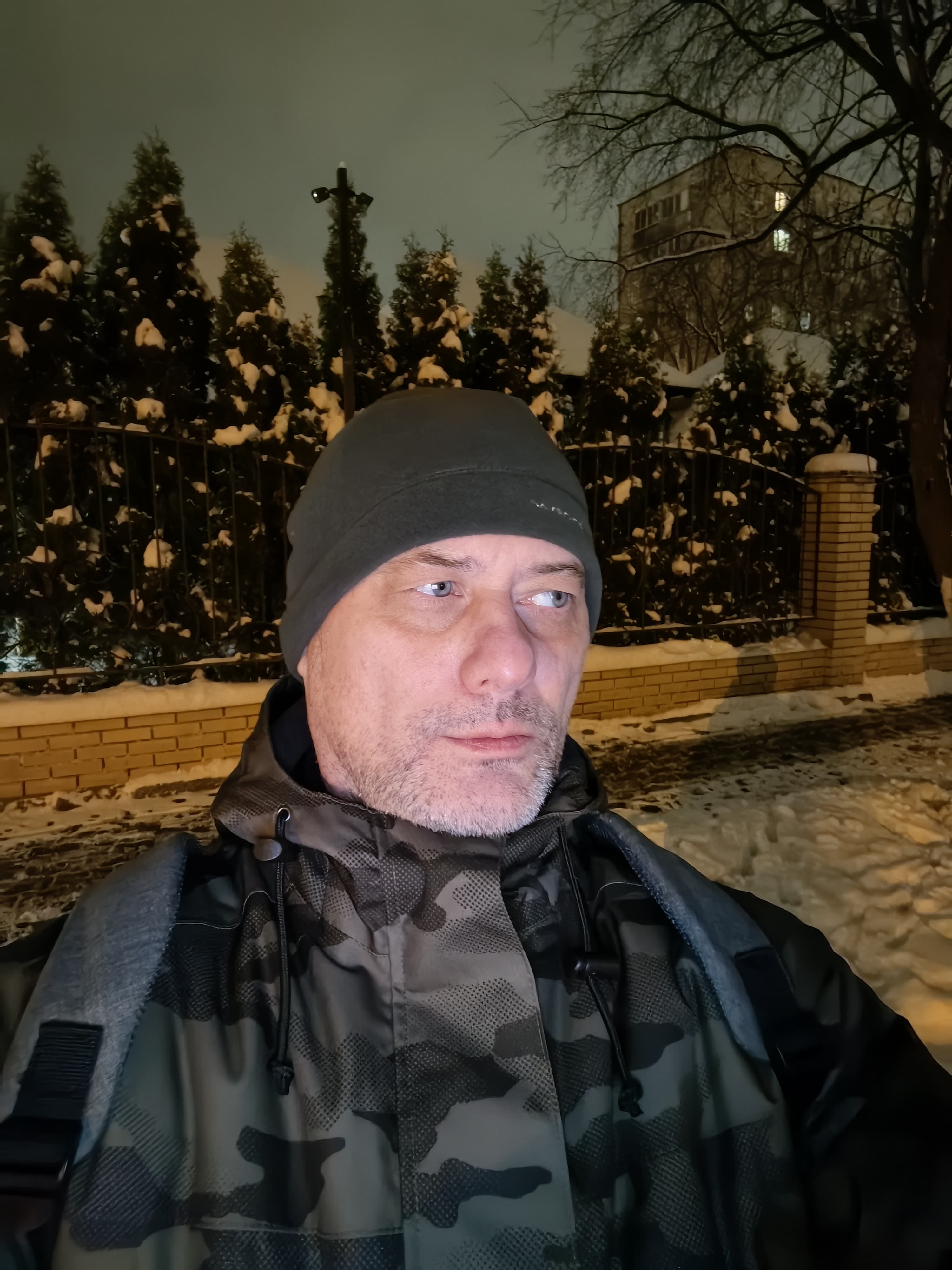 Разработчики не зря нахваливают селфи-камеру (20 Мп, 1/3,47″, 0,8 мкм, f/2,2). Она даже ночью, не то что при дневном свете, выдает максимально проработанную картинку с высокой детализацией и совсем без завалов в темных участках. Баланс белого, правда, искажен ночью так же, как и при съемке на основную камеру. Очевидно, это решение принимает ИИ в процессе съемки. В любом случае, это одна из лучших фронтальных мобильных камер.