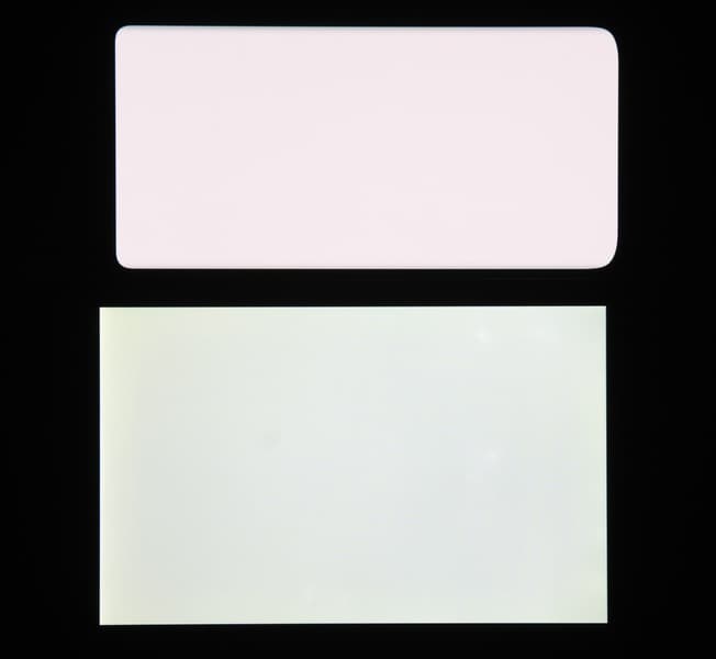 Экран характеризуется великолепными углами обзора. Правда, белый цвет при отклонении на большие углы приобретает едва заметный сине-зеленый оттенок. Черный цвет остается просто черным под любыми углами. Он настолько черный, что параметр контрастности в данном случае неприменим. Для сравнения приведем фотографии, на которых на экраны Huawei Mate 50 Pro и второго участника сравнения выведены одинаковые изображения, при этом яркость экранов изначально установлена примерно на 200 кд/м², а цветовой баланс на фотоаппарате принудительно переключен на 6500 К.