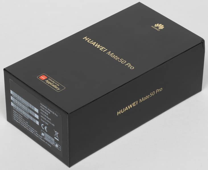 Дорогой продукт начинается с солидной упаковки. Huawei Mate 50 Pro упакован в коробку с типичным для такого уровня черным оформлением с золотистым тиснением. Но расширенного комплекта коробка не содержит. Здесь стандартно лежат лишь зарядное устройство с выходной мощностью 66 Вт, соединительный кабель и защитный чехол.