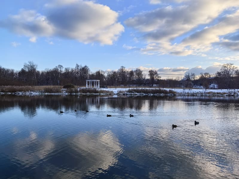С функцией объединения пикселей камера делает фотографии в разрешении 12,5 Мп, но можно переключиться на полное разрешение 50 Мп. Ультимативная по качеству камера достойна самой высокой похвалы. Она даже в сложных условиях дневного зимнего освещения выдает сочную, контрастную и высокодетализированную картинку. Цветопередача совершенно не приукрашена, баланс белого верный, цвета натуральные. Широта динамического диапазона качественной матрицы позволяет в полной мере проэкспонировать без потерь все участки светов и теней. Оптика чистая, без видимых смазов по краям, паразитных бликов и геометрических искажений (лишь в самых углах бывает заметна потеря детализации).
