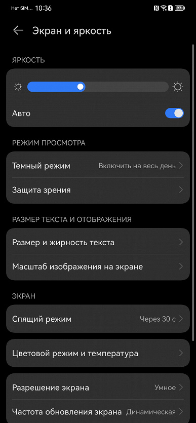 В настройках экрана можно включить режим с повышенной до 120 Гц частотой обновления: