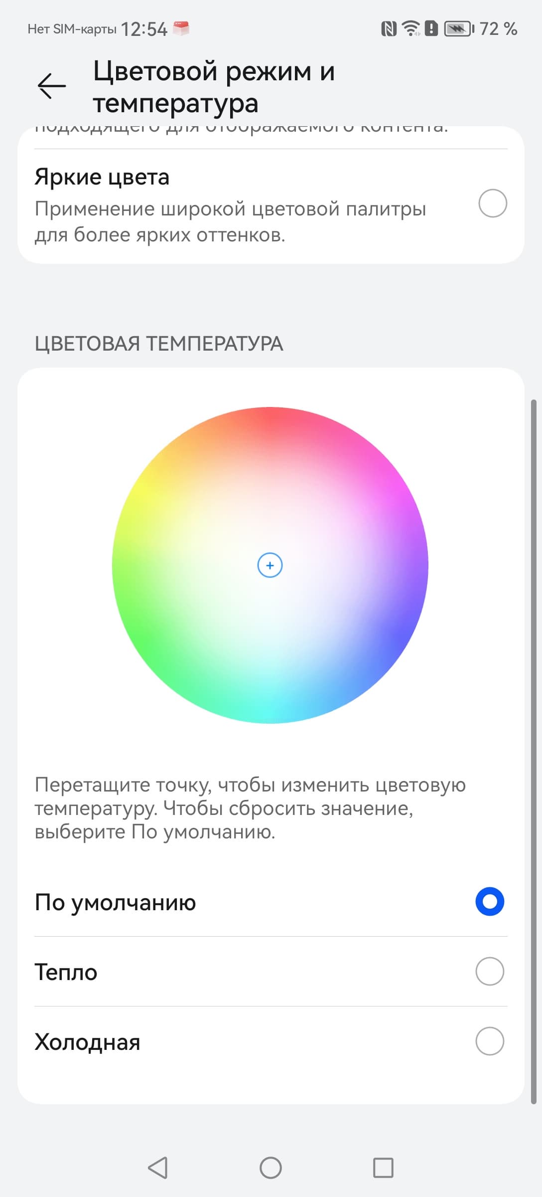 Фотография выше получена при активном профиле Обычные цвета (он выбран по умолчанию) в настройках экрана, всего их два: